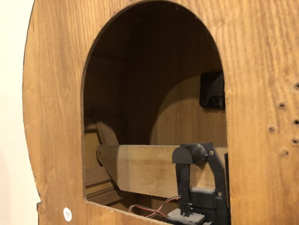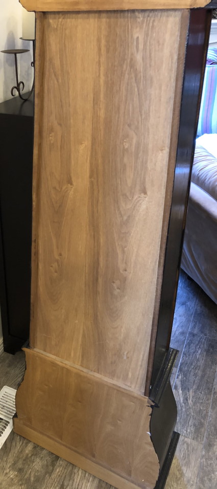 You can really select any clock you want as long as it is big enough for the electronics you chose. You could even build your own clock cabinet if you have the skill to. However, I had a fake grandfather clock I bought at a yard sale several years earlier. I say “fake” because it did not have the gears, chimes, weights, etc. that a real, traditional grandfather clock has. It had a basic quartz clock mechanisms, a electronic chime, and electromagnet motor to keep the pendulum swinging. The weights and weight chains were just attached to the clock cabinet with eye hooks.